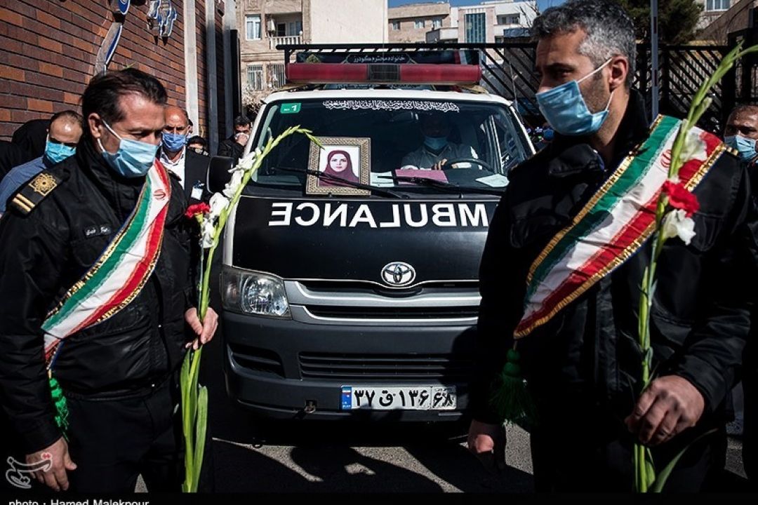 مراسم تشییع پیكر شهیده مدافع سلامت مهشید گودرز، پرستار باردار بخش كرونای مركز پزشكی، آموزشی و درمانی لقمان كه بر اثر كرونا به شهادت رسیده بود روز یكشنبه (26 بهمن) در بیمارستان لقمان حكیم تهران برگزار شد.